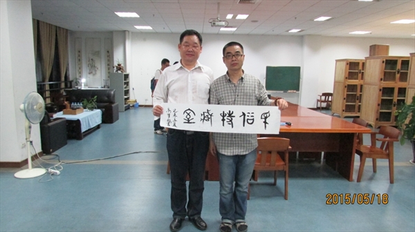 高有鹏教授还是长篇历史小说创作方面的著名作家和长于于篆文的书法家。讲座结束后,他应万军老师要求题写了篆文体的“民俗特藏室”“品茶论俗”“淡泊明志”条幅。(王辉)