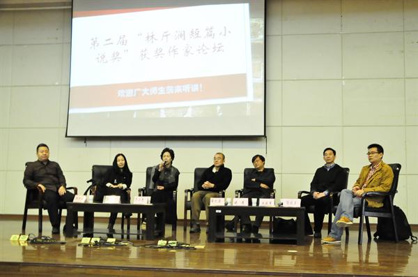 11月4日上午,第二届“林斤澜短篇小说奖”获奖作家论坛在公司育英图书馆学术报告厅举行。论坛邀请范小青、金仁顺、薛忆沩、晓苏4位获奖者以及《人民文学》主编施战军、鲁迅文学奖短篇小说奖获得者徐则臣等一批文坛“大腕”,在《人民文学》副主编邱华栋的主持下,就短篇小说的创作心得、短篇小说的文学地位、写作对生活的影响等问题展开了深入的探讨。本次论坛由温州市文联和公司共同承办。文联主席王手、公司吴静书记、骆锤炼副书记、孙良好副经理以及校内外100多名文学爱好者出席论坛。