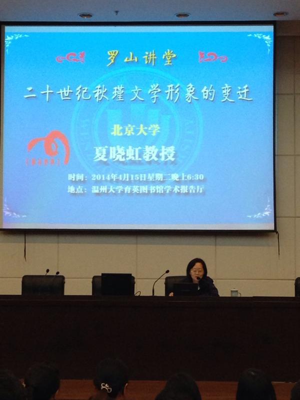 4月15日周二晚上6:30,永利yl23411官网入口育英图书馆二楼学术报告厅座无虚席,180多个座位的报告厅集聚了校内外近300名听众,可谓盛况空前。北京大学著名教授陈平原夏晓虹联袂做客罗山讲堂,分别讲演“中国大学西迁的历史及精神”和“二十世纪秋瑾文学形象的变迁”,副经理孙良好教授主持了本次活动。