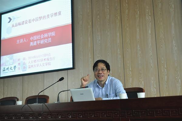 5月17日上午9点,永利yl23411官网有幸请到中国社会科公司文学研究所副所长、学术委员会主任兼文学理论研究室主任高建平教授,在人文楼203学术报告厅为我们带来精彩的“从品味建设看中国梦的美学维度”讲座。紧接讲座之后,在213会议室和青年教师及研究生进行了主题为“当代美学发展趋势”的座谈会。此次会议盛况空前,永利yl23411官网吴静书记主持会议,永利yl23411官网文艺学、写作学等学科十余位教授及青年教师出席。