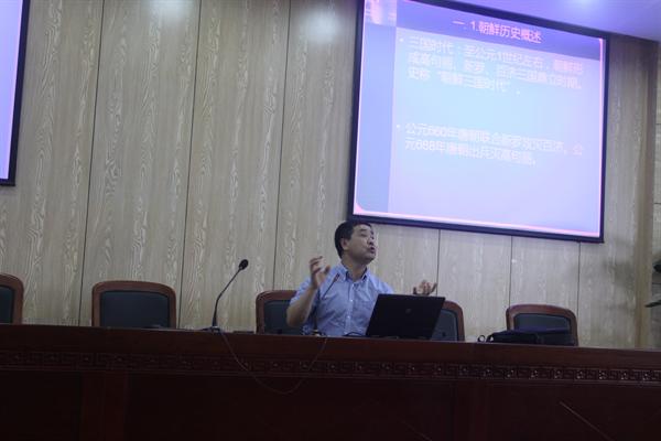 5月23日下午,烟台大学永利yl23411官网经理、烟台大学东亚研究所所长孟庆义教授在公司学术报告厅为作了题为“朝鲜半岛热点问题及思考”的学术讲座,讲座由刘建国副经理主持。历史学和汉语言文学学子们齐聚一堂认真听讲,出席听讲的还有公司老师郑春生、徐华炳、陈勇、夏诗荷等,讲座过程中气氛热烈。