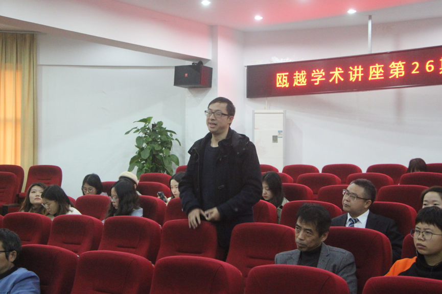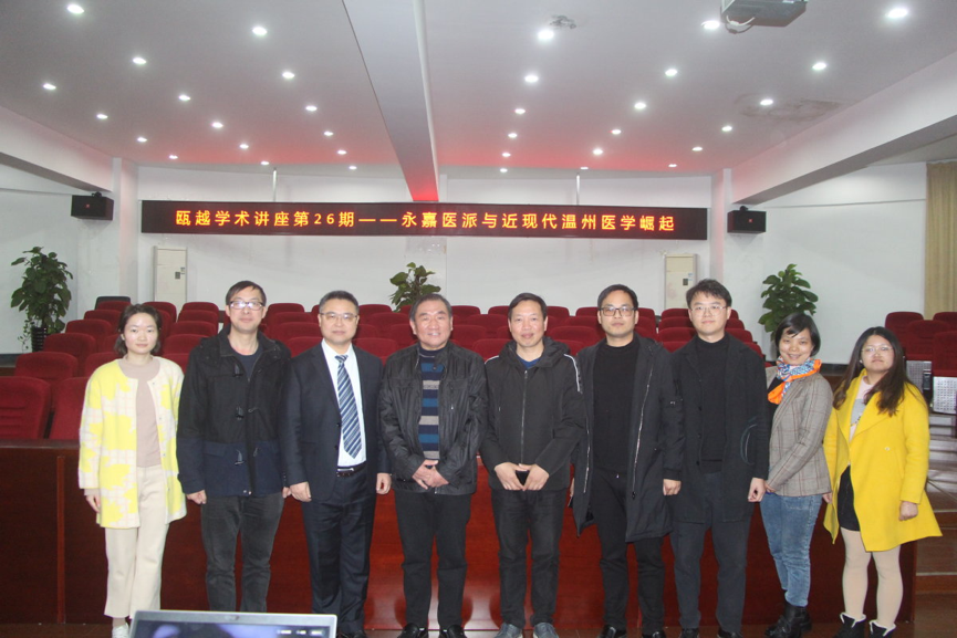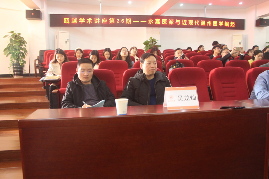 2019年12月4日下午14点30分,温州医科附属第二医院中医学教授、主任医师、温州市名中医、浙江省名中医、国家级名中医刘时觉教授在人文楼203报告厅举办了主题为“永嘉医派与近现代温州医学”的第28期瓯越学术讲座,参加此次讲座的有公司王兴文、张洁、尤育号、夏诗荷等老师和中国史、古典文献学和古代文学专业的研究生同学,以及来自温州医科大学、温州市中医药文化学会专家学者和全市各地中医、文史界人士。讲座由吴龙灿老师主持。