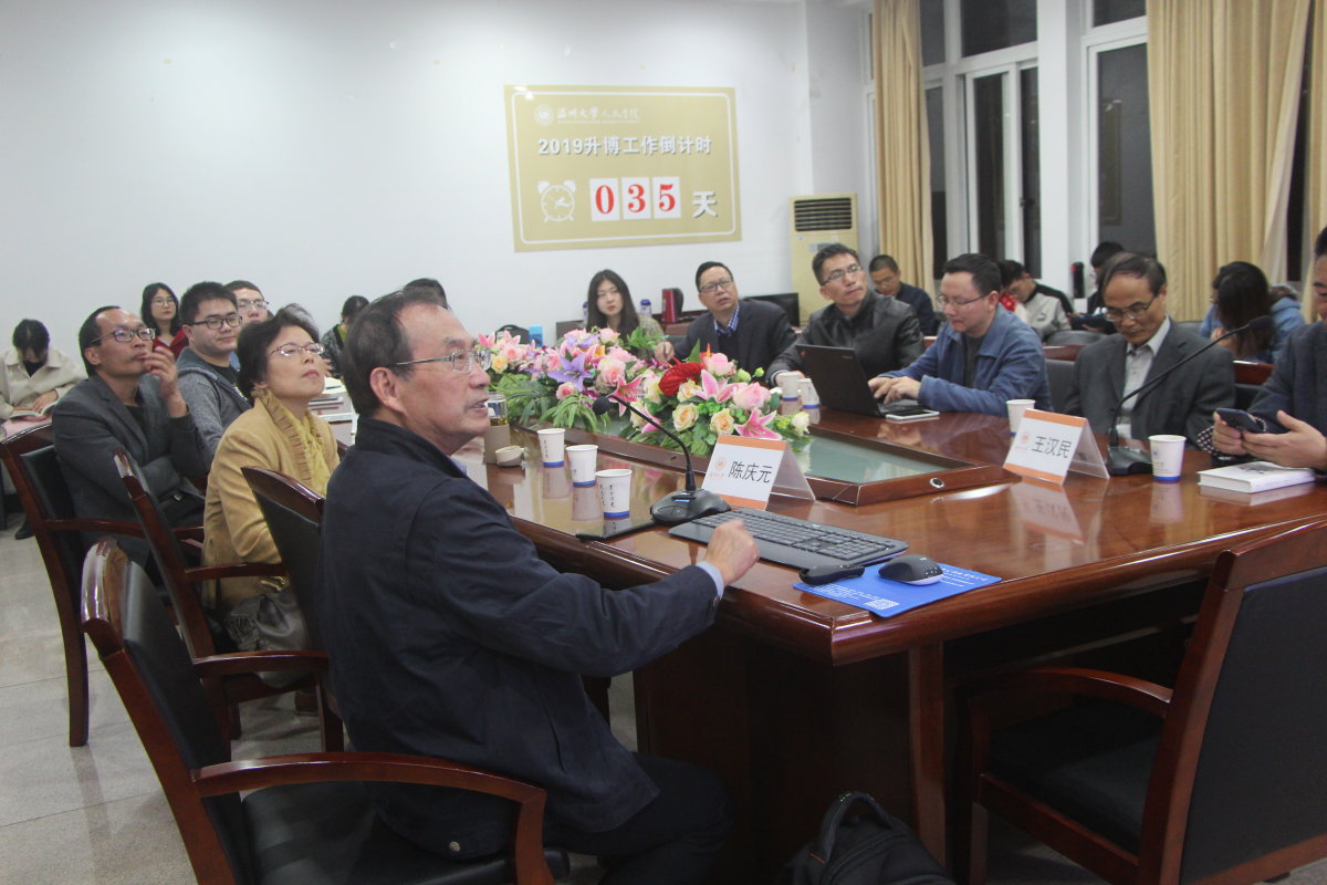 2019年11月26日晚,福建师范大学文公司博士生导师陈庆元教授莅临本院作《明万历东海擒倭<海石铭>文学现场》讲演。讲座由公司王汉民教授主持。