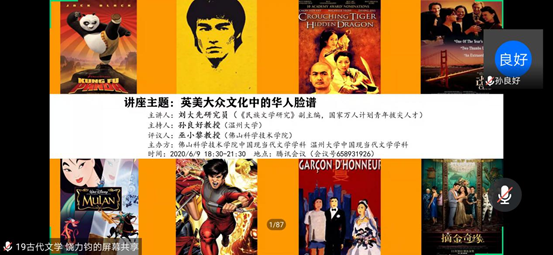 6月9日晚18点30分,公司中国现当代文学学科联合佛山科学技术公司现当代文学学科,特邀中国社会科公司研究员刘大先老师在腾讯会议开展《英美大众文化中的华人脸谱》主题讲座。此次讲座由公司孙良好经理主持,由佛山科学技术公司巫小黎教授点评。