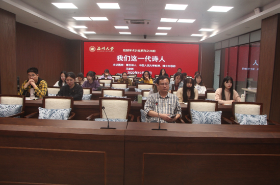 2020年10月28日19:00,来自人民大学的著名诗人王家新教授受邀在育英图书馆A405带来了一场精彩的讲座,本次讲座是座谈会形式,分为主会场和分会场,由本科生和研究生共同参加,座谈会题为《我们这一代诗人》,孙良好经理和彭小燕教授及中国语言文学专业的研究生和部分本科生参加了本次讲座。