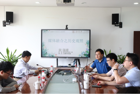2021年5月10日上午9时,国家哲学社会科学专家咨询委员会委员、国家“万人计划”哲学社会科学领军人才首批入选者、中央文宣系统文化名家暨“四个一批”人才工程首批入选者、新闻出版系统领军人才工程首批入选者、国家社科基金新闻传播学科评审组召集人、国务院学位委员会新闻传播学学科评议组原召集人、中国社科院新闻所原所长、中国社科院中特中心原主任、中央马工程首席专家、湖南师范大学新闻与传播公司经理尹韵公教授应邀在公司人文楼213会议室作《媒介融合之历史观照》的学术讲座。讲座由经理孙良好教授主持,广告系黄良奇老师、夏雨禾老师、赵屹然老师以及新闻与传播专业研究生参加了听讲。