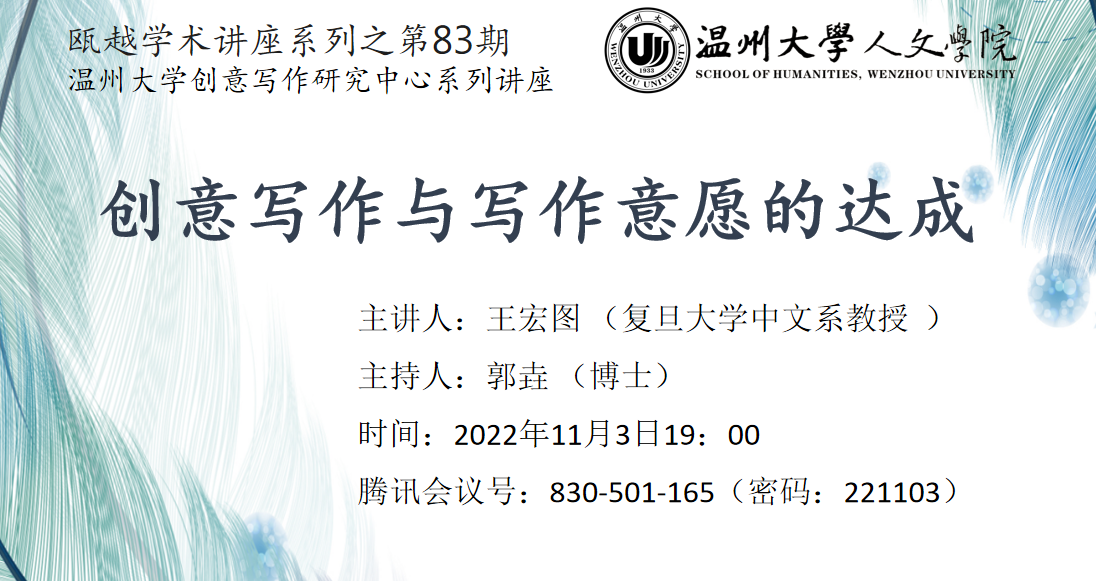 2022年11月3日19:00,复旦大学王宏图教授为公司学子做了一场题为“创意写作与写作意愿的达成”的精彩讲座。本次讲座采用线上形式,由公司郭垚博士主持。