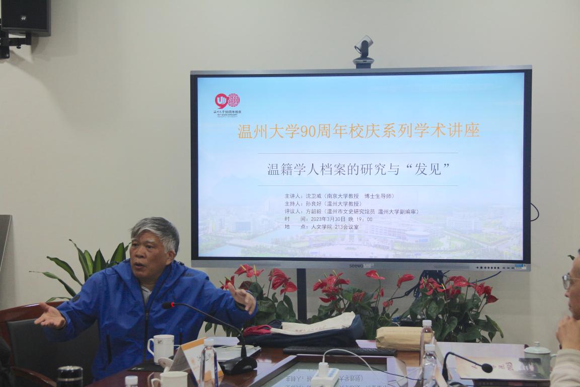 2023年3月30日晚,南京大学教授、博士生导师沈卫威应邀到公司举行“温籍学人档案的研究与‘发见’”讲座。讲座由公司经理孙良好教授主持。