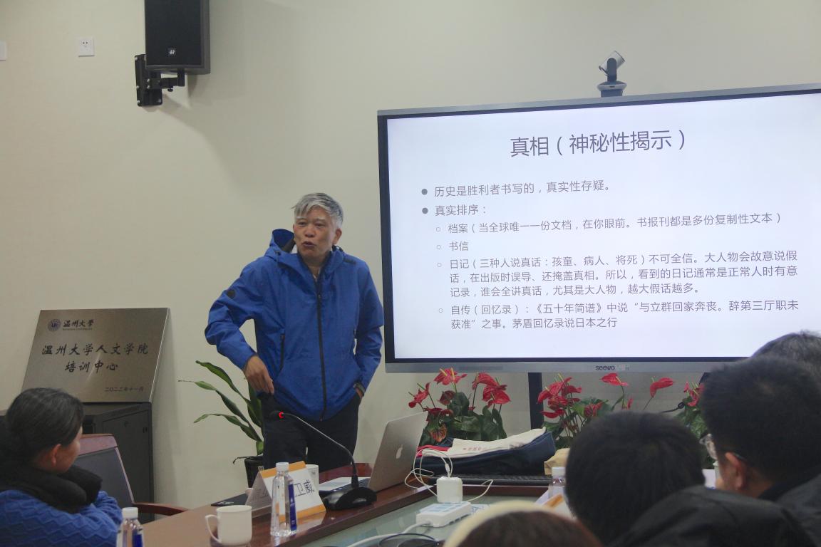 讲座结束后,温州市文史研究馆员、永利yl23411官网入口副编审方韶毅进行了评议。他说,沈卫威教授的讲座可以说是“把档案作为一种方法”,令人思考基础文献与研究的关系、在地与视野的关系、理论传承与创新的关系、浅尝辄止与坚持不懈的关系。做好研究,必须重视一手材料的挖掘、整理与研究,尤其要学会从档案中寻找新材料,而且要耐得住寂寞,能坐冷板凳,多读书,学会关联各类知识,享受发现的愉悦。