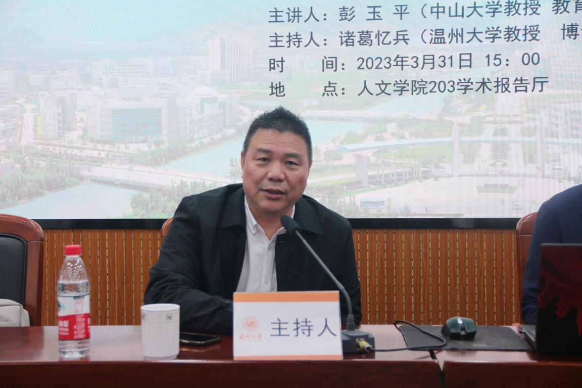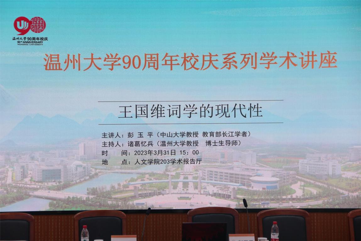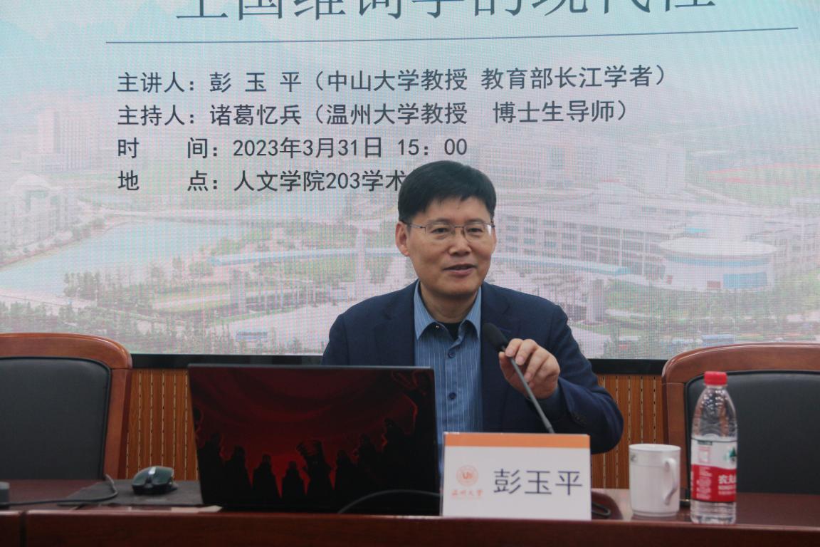 2023年3月31日下午,教育部长江学者、中山大学彭玉平教授为公司学子作了一场题为“王国维词学的现代性”的学术讲座。讲座由公司诸葛忆兵教授主持,约150余名师生参加了此次讲座。