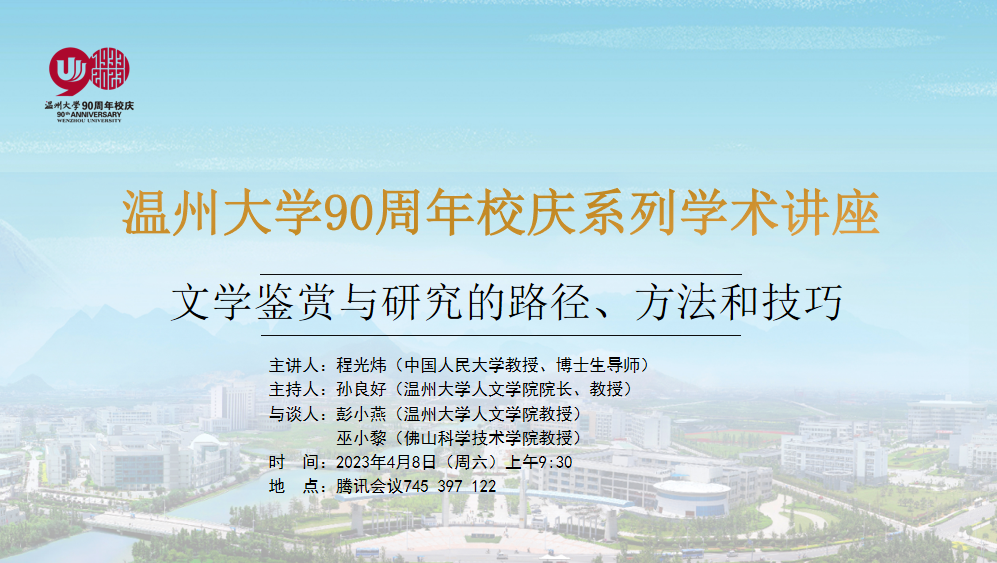2023年4月8日上午,中国人民大学“大华讲席教授”、博士生导师、中国当代文学研究会副会长程光炜教授为公司学子作了题为“文学鉴赏与研究的路径、方法和技巧”的专题讲座。程光炜教授以张洁的短篇小说《爱,是不能忘记的》为例,漫谈文学作品的欣赏,并结合自己的研究,讲解了文学史研究的方法。本次讲座由公司经理孙良好教授主持,数百名师生参加了讲座。