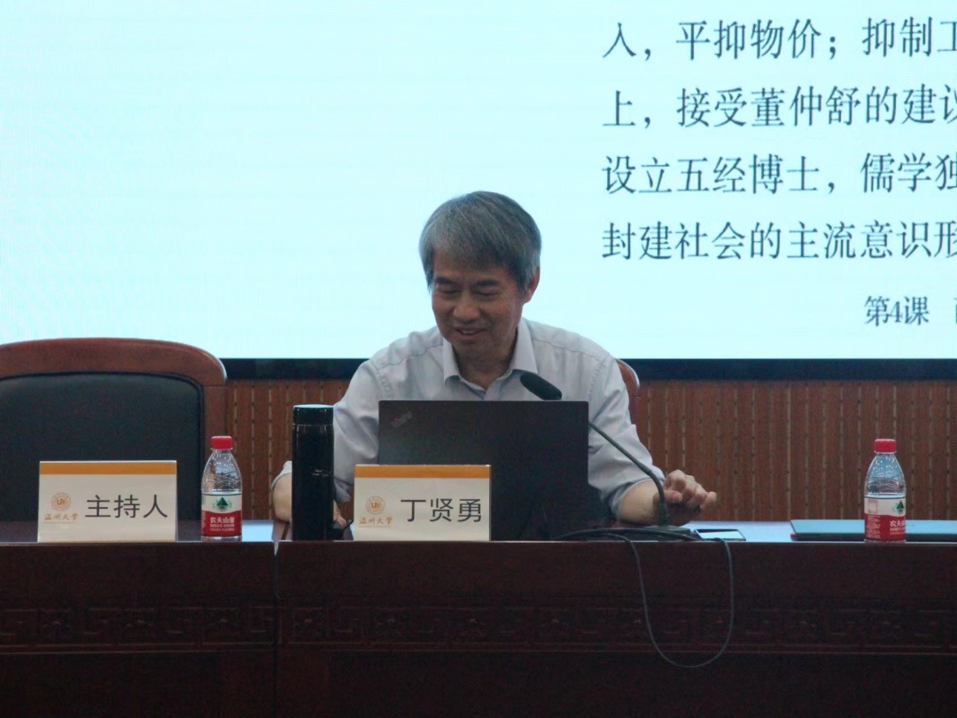 2023年5月26日下午,在公司203学术报告厅,杭州师范大学历史学教授、浙江省人民政府督学丁贤勇教授为公司师生带来一场题为《结构与建构:高中新教材的一项解读》的学术讲座。本次讲座由公司刘建国教授主持,蒋金崇教授评议。