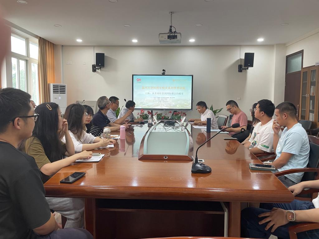 2023年6月20日下午,永利yl23411官网入口90周年校庆系列学术讲座在公司213学术交流中心顺利举行。本次讲座由华东师范大学历史系教授阮清华主讲,题为“上海:从东南壮县到国际都会的蝶变”,永利yl23411官网副经理郑春生教授担任本次讲座主持。陈勇、刘建国、尤育号、唐运冠、刘莉、陈鸿超、王鹏等老师与到场师生一同聆听讲座。