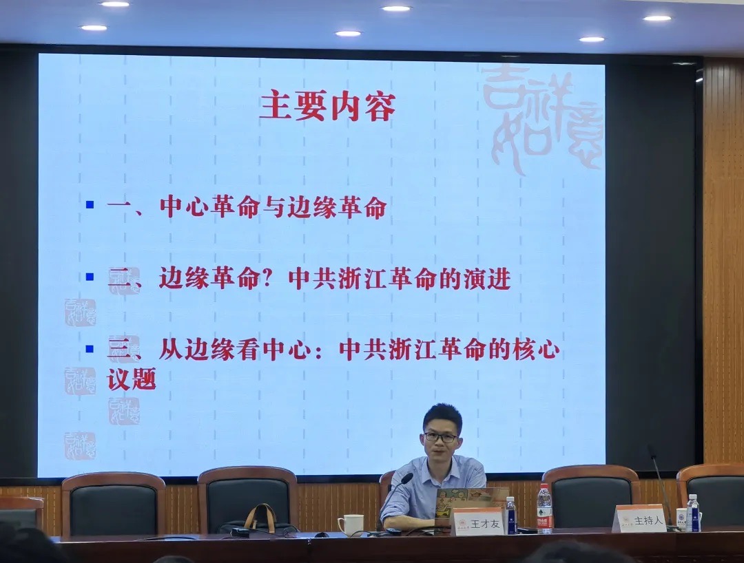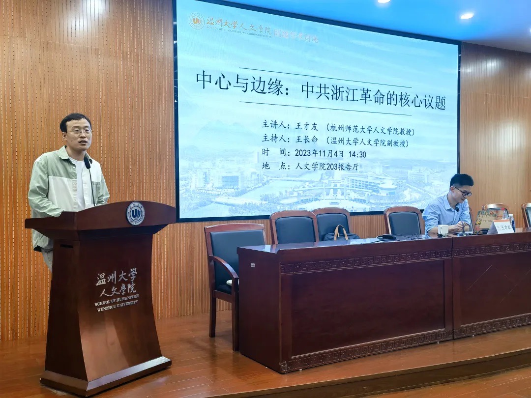 2023年11月4日下午,杭州师范大学永利yl23411官网历史系王才友教授应邀在公司203报告厅作题为“中心与边缘:中共浙江革命的核心议题”的学术讲座。公司历史系王长命副教授主持,中国史教研室王鹏老师及相关专业的同学出席讲座。