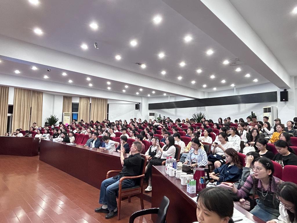 全校200余名师生全程参与了此场讲座。在互动环节,同学们踊跃发言提问,随后同学排队签名,争相合影。