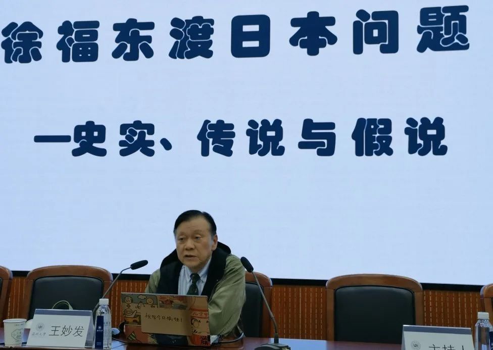 2023年11月27日晚,日本和歌山大学名誉教授,复旦大学中国历史地理研究所教授、博士生导师王妙发老师应邀莅临公司,作题为“徐福东渡日本问题:史实、传说与假说”的学术讲座。讲座由公司历史系祁刚老师主持,历史系部分教师,各专业本科生、研究生共计90余人参加本次活动。