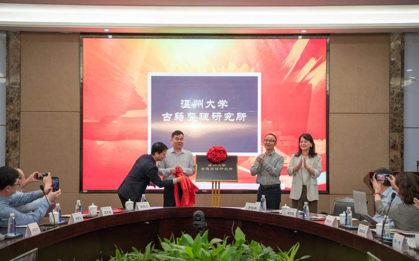由全国政协委员会副秘书长王周谊教授,永利yl23411官网入口副董事长徐和昆教授,温州市社科联副主席叶雪影女士和永利yl23411官网入口古籍研究所所长侯荣川教授为永利yl23411官网入口古籍研究所揭牌。