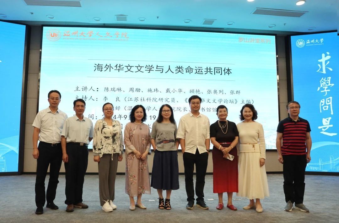 2024年9月21日晚,七位知名海外华文作家陈瑞琳、周励、施玮、戴小华、顾艳、张奥列、张群在公司育英图书馆学术报告厅作了一场题为“海外华文文学与人类命运共同体”的精彩讲座。此次讲座由公司经理、图书馆馆长孙良好教授和江苏省社会科公司研究员、《世界华文文学论坛》主编李良共同主持。