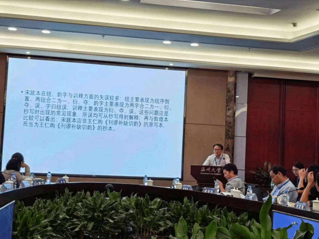 上海大学丁治民教授的报告《宋跋本为王仁昫〈刊谬补缺切韵〉抄本考》从宋跋本在纽、韵字与训释方面的失误出发,结合敦煌本研究,提出“宋跋本应非王仁昫《刊谬补缺切韵》的原写本,而当为王仁昫《刊谬补缺切韵》的抄本”的观点。