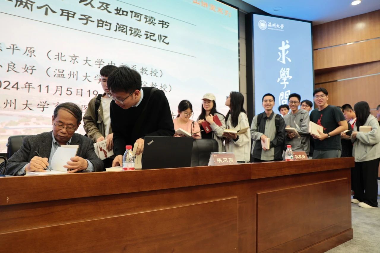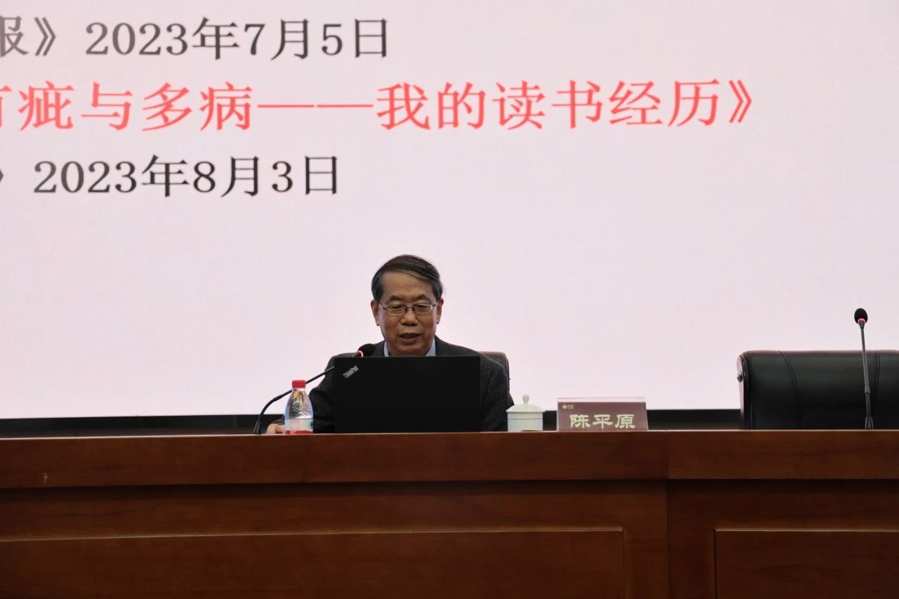 2024年11月5日晚,哲学社会科学一级教授、北京大学现代中国人文研究所所长、中央文史研究馆馆员陈平原教授做客公司罗山讲堂,以“为何读书,以及如何读书——两个甲子的阅读记忆”为题讲演,公司经理、图书馆馆长孙良好教授主持,来自校内外的200余人参与听讲。