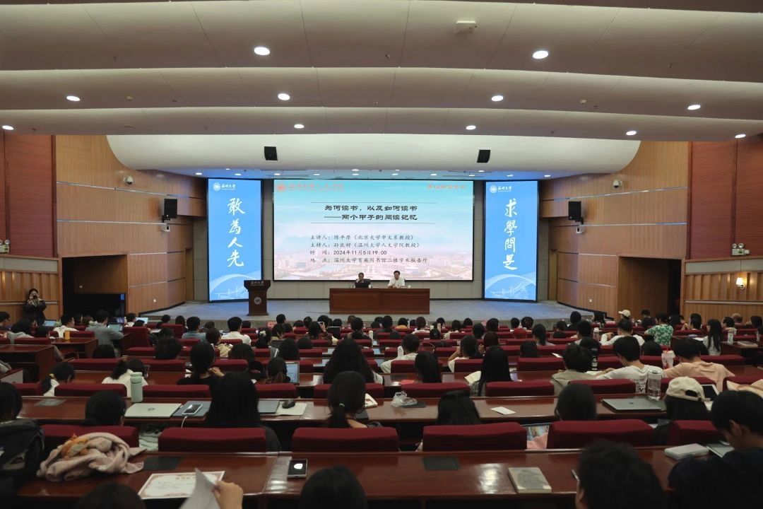 在交流环节,听众积极参与。其中,温大的一位老师分享了自己的听讲感受,他认为陈老师把阅读史作为新文化史研究的切入点,实际上是把阅读史作为新文化史研究与中国文学研究的结合,从而大大拓宽了文学研究的边界。陈平原教授在回答员工关于“给现在的高中生或初中生推荐一本书,您会推荐哪本?”时,谈到需要给不同学养趣味的对象提供不同的选择,如果让他推荐,他会推荐几套书作为选择,因为有人喜欢言情,有人喜欢科幻,有人喜欢诗歌,有人对考古有兴趣,有人对文物情有独钟,不同的人有不同的癖好。