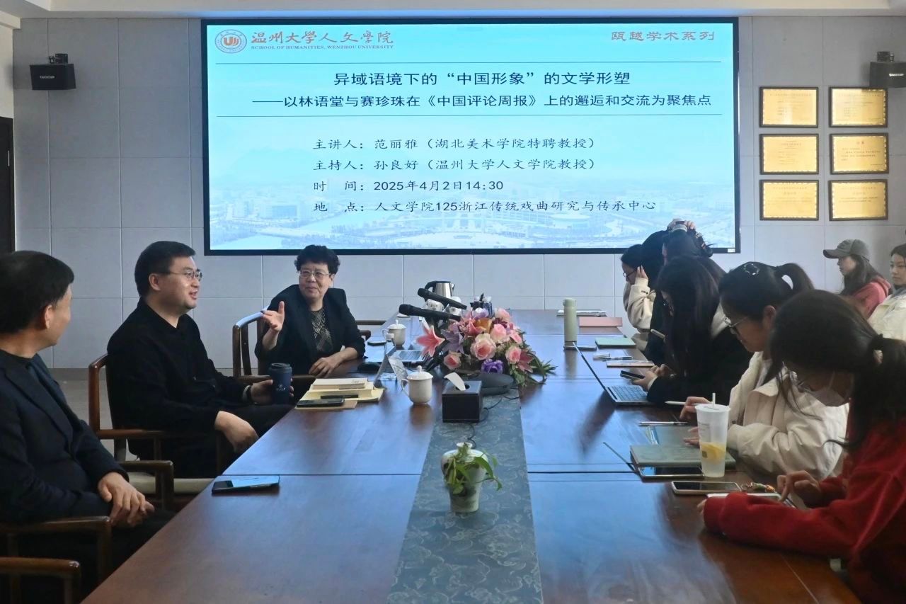 2025年4月2日,公司特邀现任湖北美术公司特聘教授范丽雅,在浙江传统戏曲研究与传承中心开展“异域语境下的‘中国形象’的文学形塑——以林语堂与赛珍珠在《中国评论周报》上的邂逅和交流为聚焦点”专题讲座。讲座由公司经理、图书馆馆长孙良好教授主持,参与讲座的听众有侯荣川教授以及在校硕士研究生同学。现场师生积极参与学习与讨论,学术氛围浓厚。