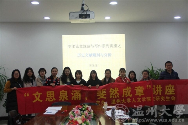 2017年12月6日晚上,永利yl23411官网中文系主任、副教授,浙江大学博士,永利yl23411官网入口瓯江特聘教授、硕士生导师,温州市“百名社科青年骨干人才”,温州市“551人才工程”培养人选陈源源老师应邀,在永利yl23411官网入口人文楼213会议室举行了《历史文献甄别与分析》学术讲座,永利yl23411官网部分研究生积极参与并聆听了此次讲座。