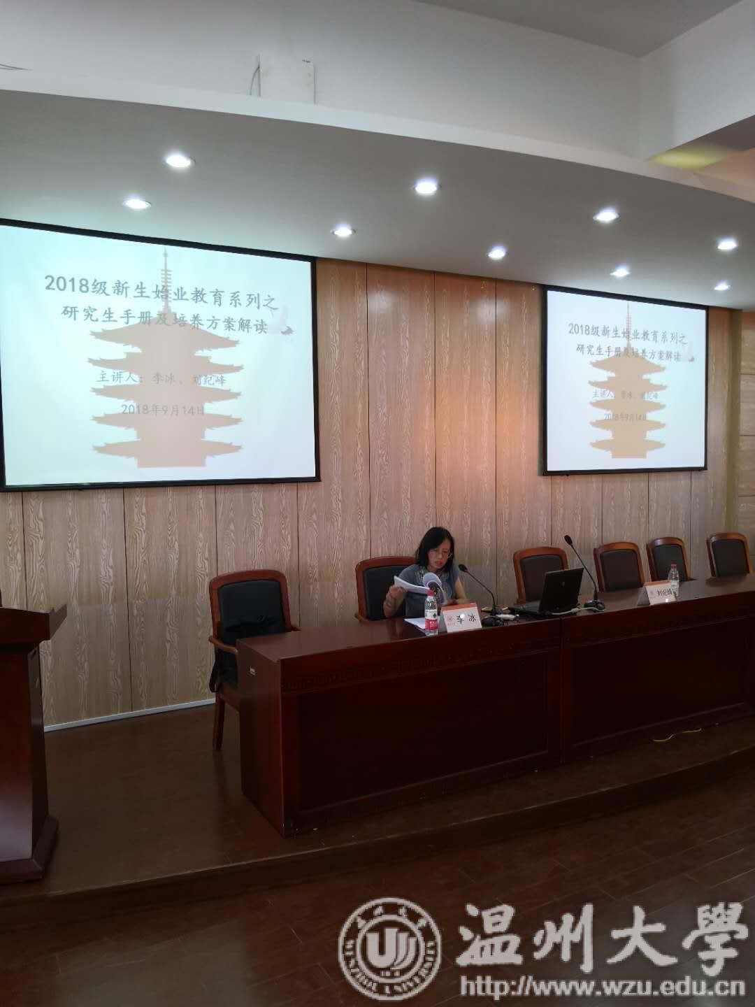 为了加强对研究生的培养和管理,2018年9月14日下午,员工科副科长刘纪峰及研究生教学秘书李冰老师于人文楼203学术报告厅开展了2018级研究生手册和培养方案解读的讲座,2018级全体研究生参加了此次讲座。