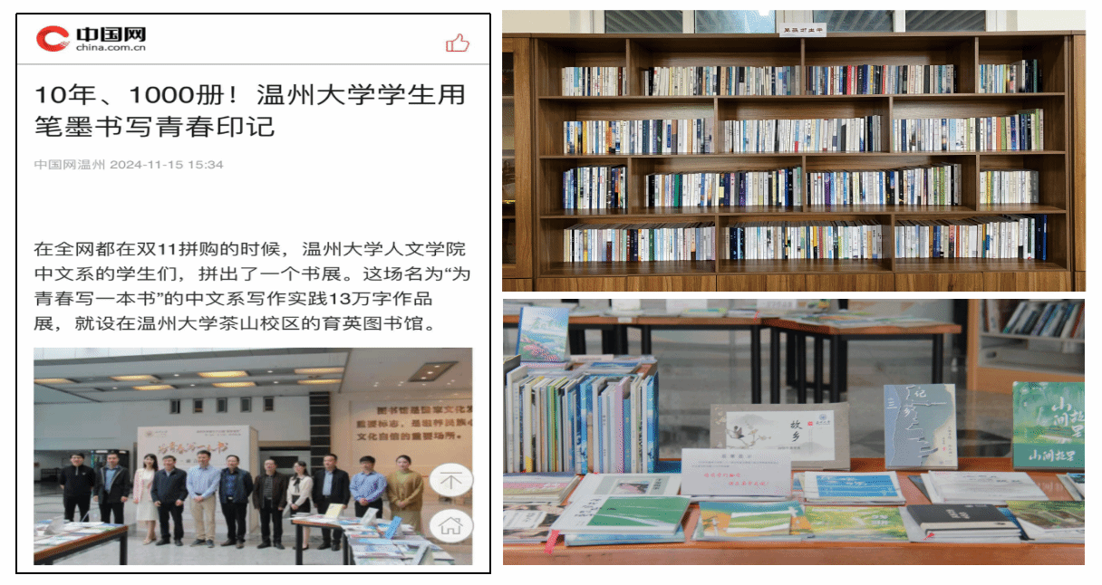 自2015年起,每位员工完成一部13万字作品集,成为员工具备写作能力的最直接证明。指导员工项目《海瓯翼行——成功“讲好中国故事”,海外传播第一民聚力》获“互联网+”大赛金奖,指导员工在《诗刊》《青春》《延河》《文学港》《香港文学》《中国校园文学》等文学名刊发表作品数十篇,指导的《“沉浸式文旅”玩转南戏》等数十篇员工作品在学习强国、中国教育电视台等媒体发表。组织员工参加“推普助力乡村振兴”实践活动获教育部和团中央联合表彰。部分毕业生成为创意写作优秀人才,如考取创意写作方向研究生,入选浙江省作协“新荷计划”人才库等。毕业生具备多元化的就业方向,主要集中于文化创意产业、政府公务员和企事业单位文职岗位。