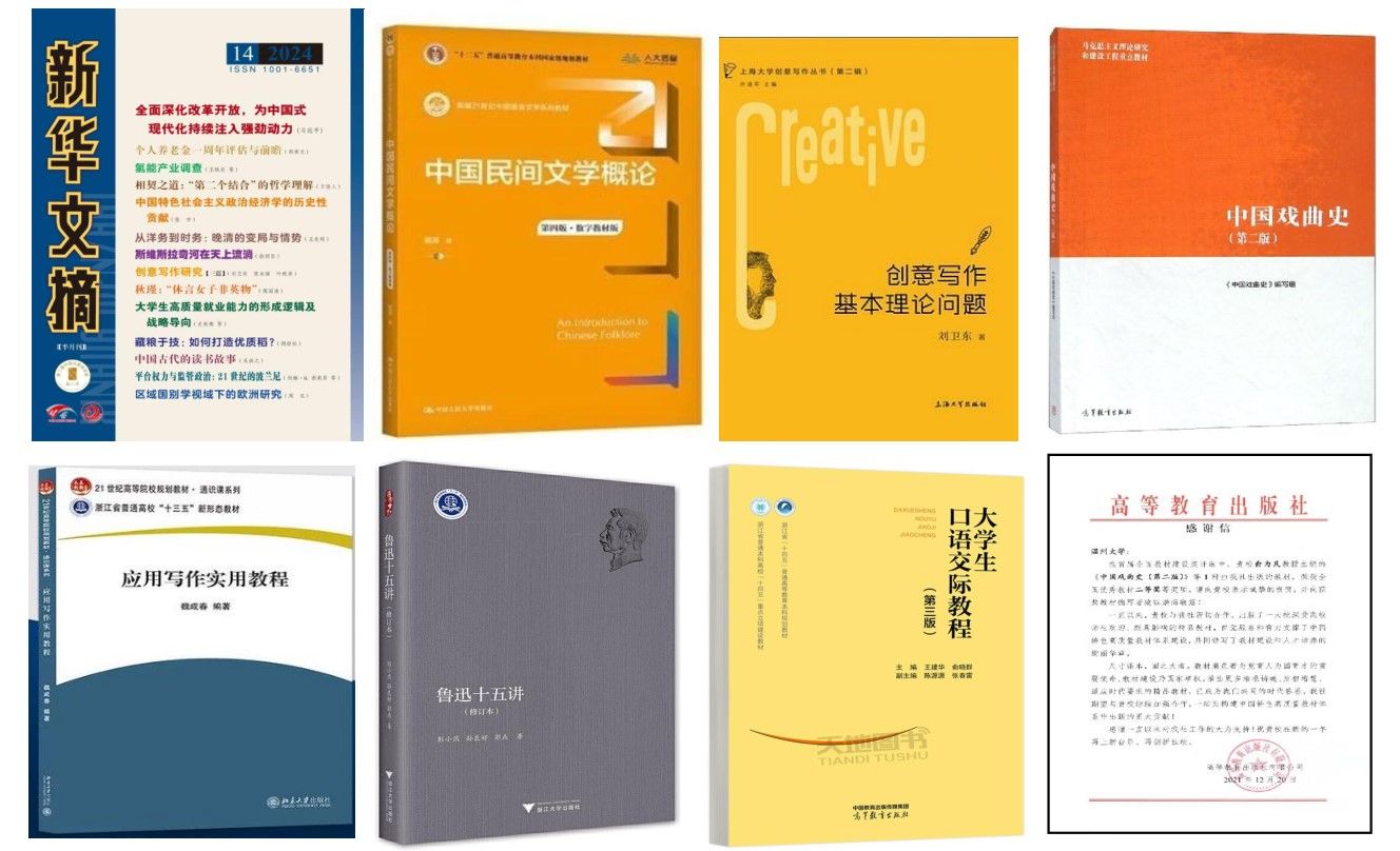 教材建设方面,《中国戏曲史》获得首届全国教材建设奖高等教育类二等奖,《鲁迅十五讲》《老员工口语交际教程》获省新文科重点教材,《应用写作实用教程》获省新形态教材,《中国民间文学概论》获国家级规划教材等。