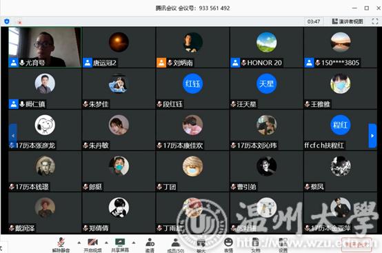 为顺利开展历史系2017级本科生实习工作,同时配合公司防疫工作安排,5月11日上午9:00,公司17历本班利用腾讯会议平台在线召开教育实习启动大会。公司副经理郑春生老师、历史系主任尤育号老师、历史系副主任陈勇老师、实习项目负责人阙仁镇老师、17历史(师范)班班主任唐运冠老师、带队教师张洁老师以及2017级历史系全体同学出席会议。