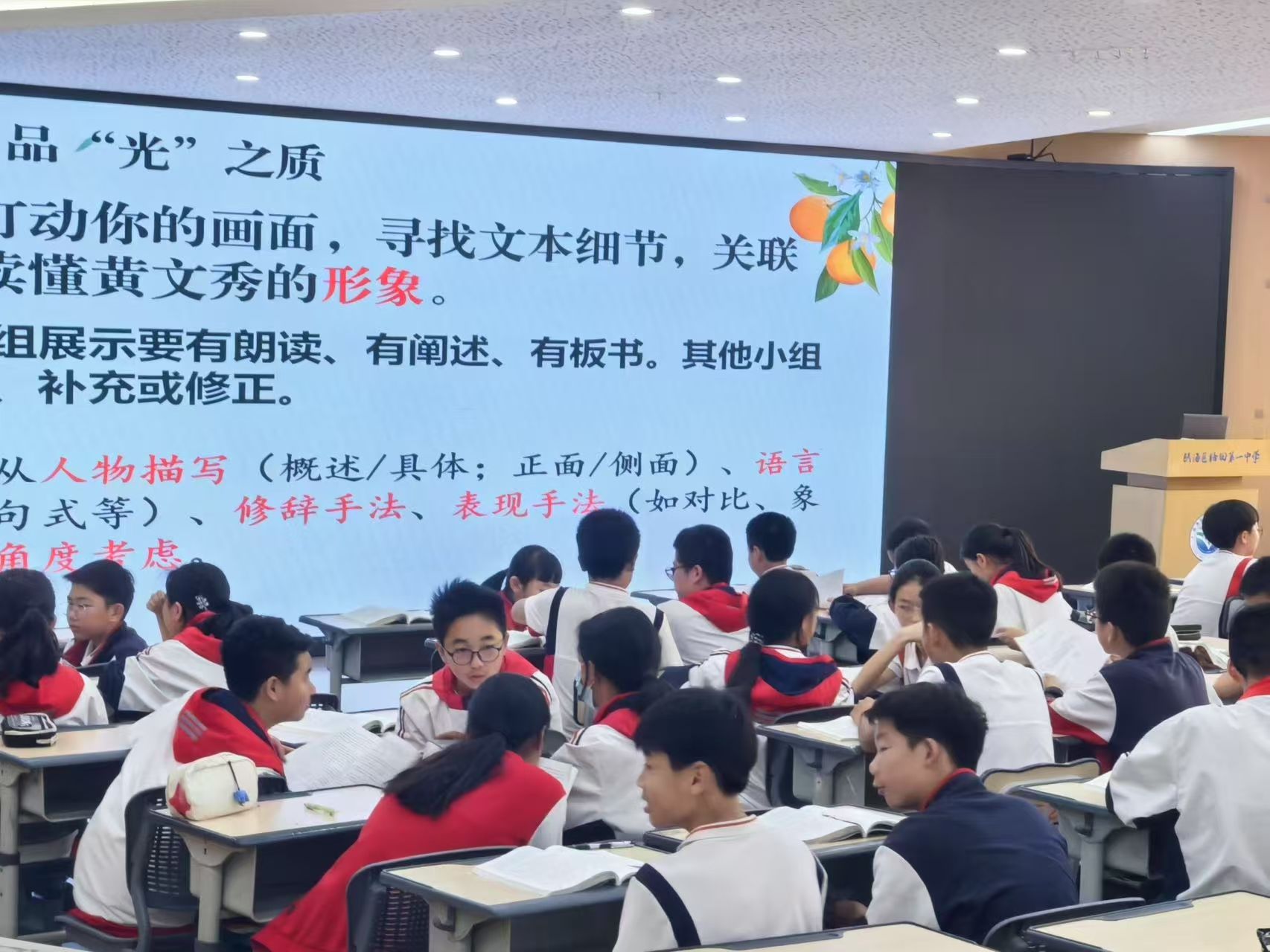 作为实习生代表之一的张雅诗同学选择的课文是《青春之光》。整堂课以题目中的“光”为主线,通过寻“光”之迹、品“光”之质、明“光”之源这三步骤层层递进,引导员工深入探究这一人物的形象和精神。整堂课既有对文本小标题的扎实解读,又通过小组合作、情景模拟等多元活动,使得员工在探寻榜样力量的过程中,让青春的思考与感悟在心中生根发芽。