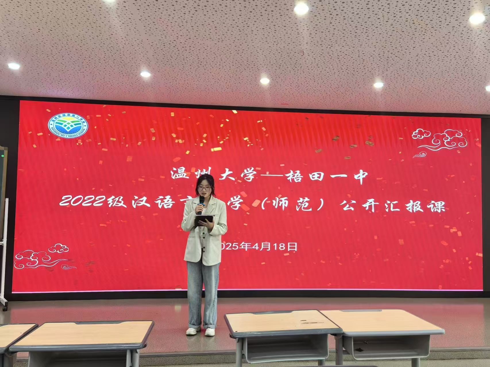 暮春之韵正悠扬,实习之旅亦收章。4月18日下午,永利yl23411官网入口选派的十七位实习生,于梧田一中顺利完成了为期两个月的实习任务,为这段实习征程画上了圆满的句号。值此实习生涯收官之际,实习生们经过精心筹备,推选代表开展了一场精彩纷呈的展示活动,全面汇报了两个月来在梧田一中实践所取得的丰硕成果。