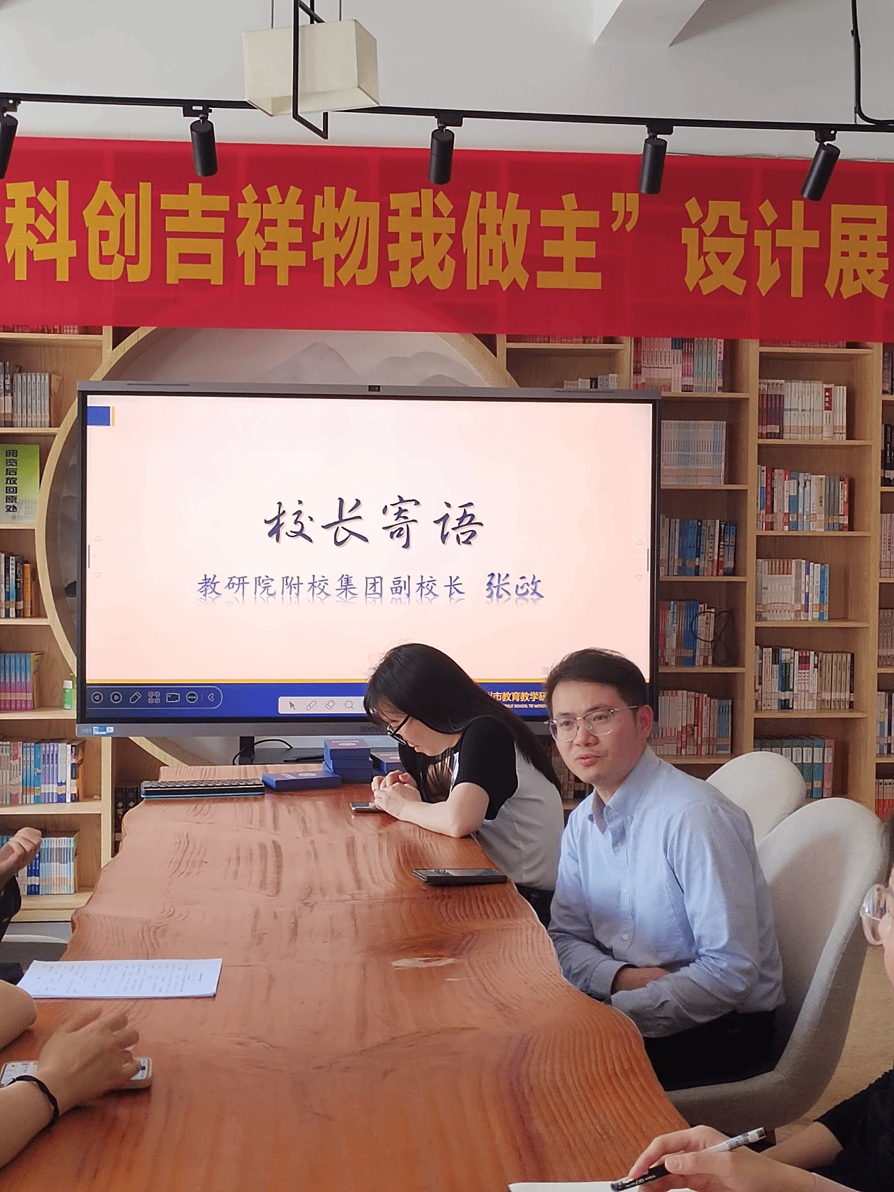 温十二中副董事长张政致辞。他认为,此次汇报课展现了实习生扎实的专业基础,也是对实习成果的检验与总结,同时充分肯定了实习生在实习期间对公司各项活动的支持与贡献。他还强调,公司高度重视此次实习工作,为实习生们配备了优秀的团队,帮助同学们习有所成。随后,张董事长还为大家送上了精美的纪念品礼盒,含有本校特色校徽、书签、钥匙扣等。