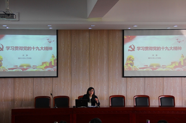 吴静书记的报告分为三个方面。她首先对十九大会议召开的背景、内容以及重要意义做了简要概述,然后从习近平总书记报告的总体框架结构、新概念新名词新理念以及报告的多重意义三个方面重点对报告做了详细解读,最后吴静书记还围绕报告中关于优先发展教育事业的论述,结合公司公司实际,对公司接下来如何聚焦团队建设、着力人才培养、寻求特色发展等问题提出了希望和要求。