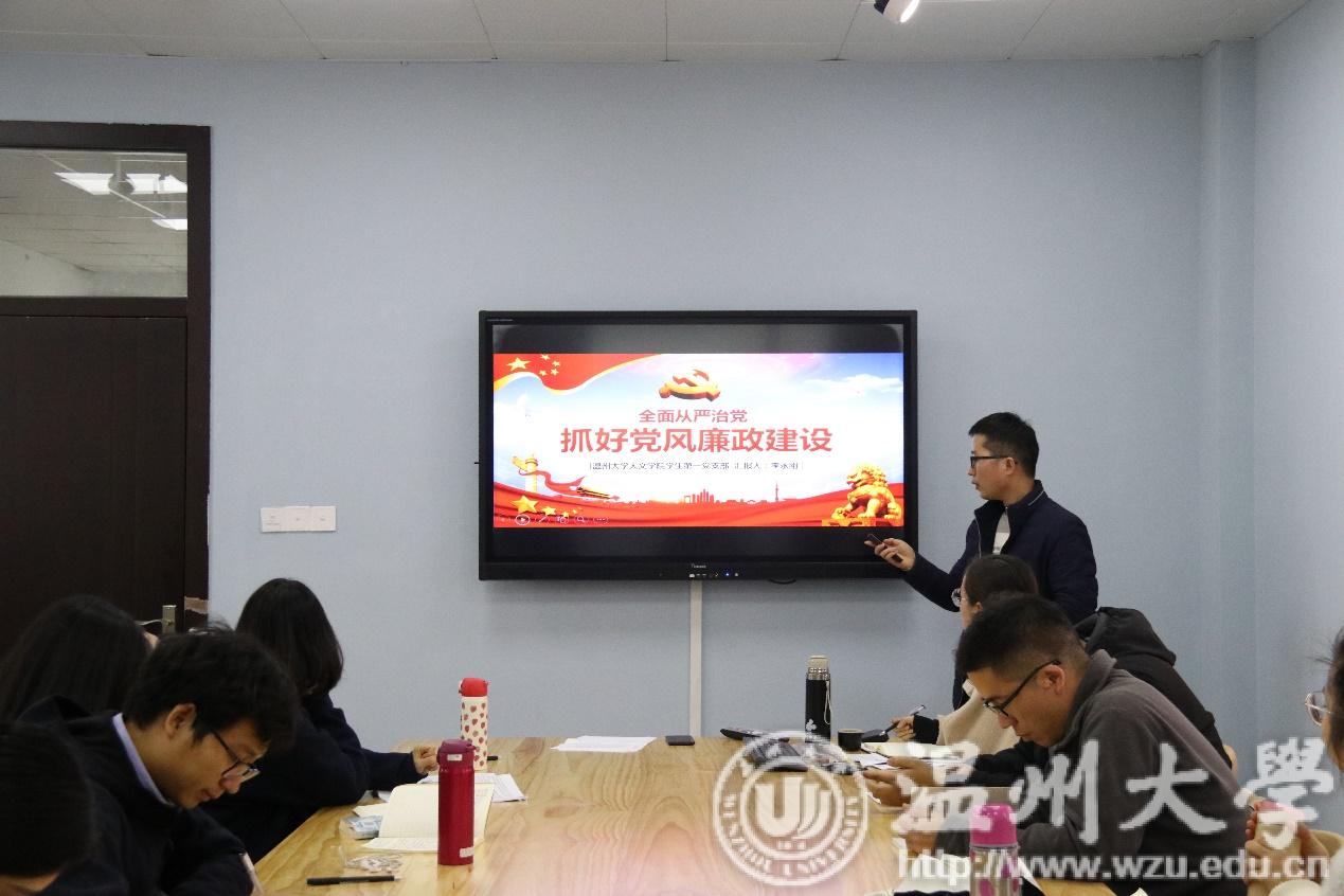 最后,员工第二党支部书记陈赛君作总结发言:“党风廉政建设需要创新方法,对于党员干部而言,他们自律廉洁影响百姓对中国共产党的看法,基于此党风廉政建设势在必行。作为一名员工党员,我们的行为也会影响身边普通同学对中国共产党的看法,因此对于员工党支部而言,提高党员的纪律意识是势在必行的。”