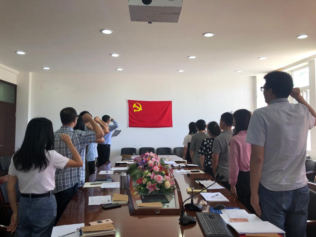 活动中,全体党员首先重温入党誓词,面向党旗庄严宣誓,以誓词问初心,以誓言铭信仰。宣誓完毕后,吴静书记与魏一副书记率先与大家分享了各自入党的心路历程,带领大家重忆入党经历,重问入党初心,重申入党使命。随后全体党员共同学唱红歌《歌唱祖国》,党员们以昂扬的精神唱出爱国爱家的深厚情感,催人奋进,再现了中国共产党带领全国各族人民经过艰苦卓绝的斗争,在实现中华民族伟大复兴的道路上奋勇前进,迈向新时代的新征程。活动最后,党员们结合支部工作方案,围绕自主学习计划和“七个一”学习要求进行了充分研讨。党员们纷纷表示,要紧紧围绕中心工作,立足岗位实际,将主题教育活动与工作紧密结合起来,在公司公司的快速发展中建功立业。