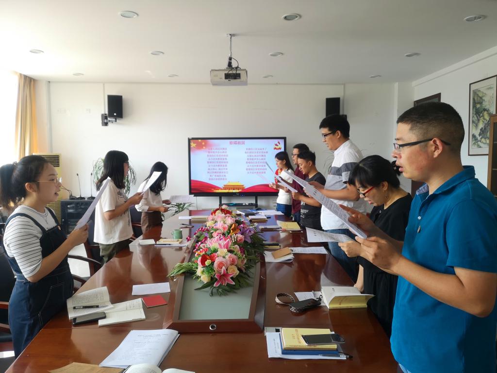 全体成员首先集中自学《习近平新时代中国特色社会主义思想学习纲要》半小时。然后参加了“不忘初心、牢记使命”主题教育应知应会知识测试,并围绕测试答案进行了集中讨论学习。支部成员赵建和赵钡钡围绕“四重四敢”学习主题分享了各自的入党历程,重忆入党经历,重问入党初心。最后,全体党员共同学唱红歌《歌唱祖国》,大家以昂扬的精神姿态,将爱国情融入在歌声中。
