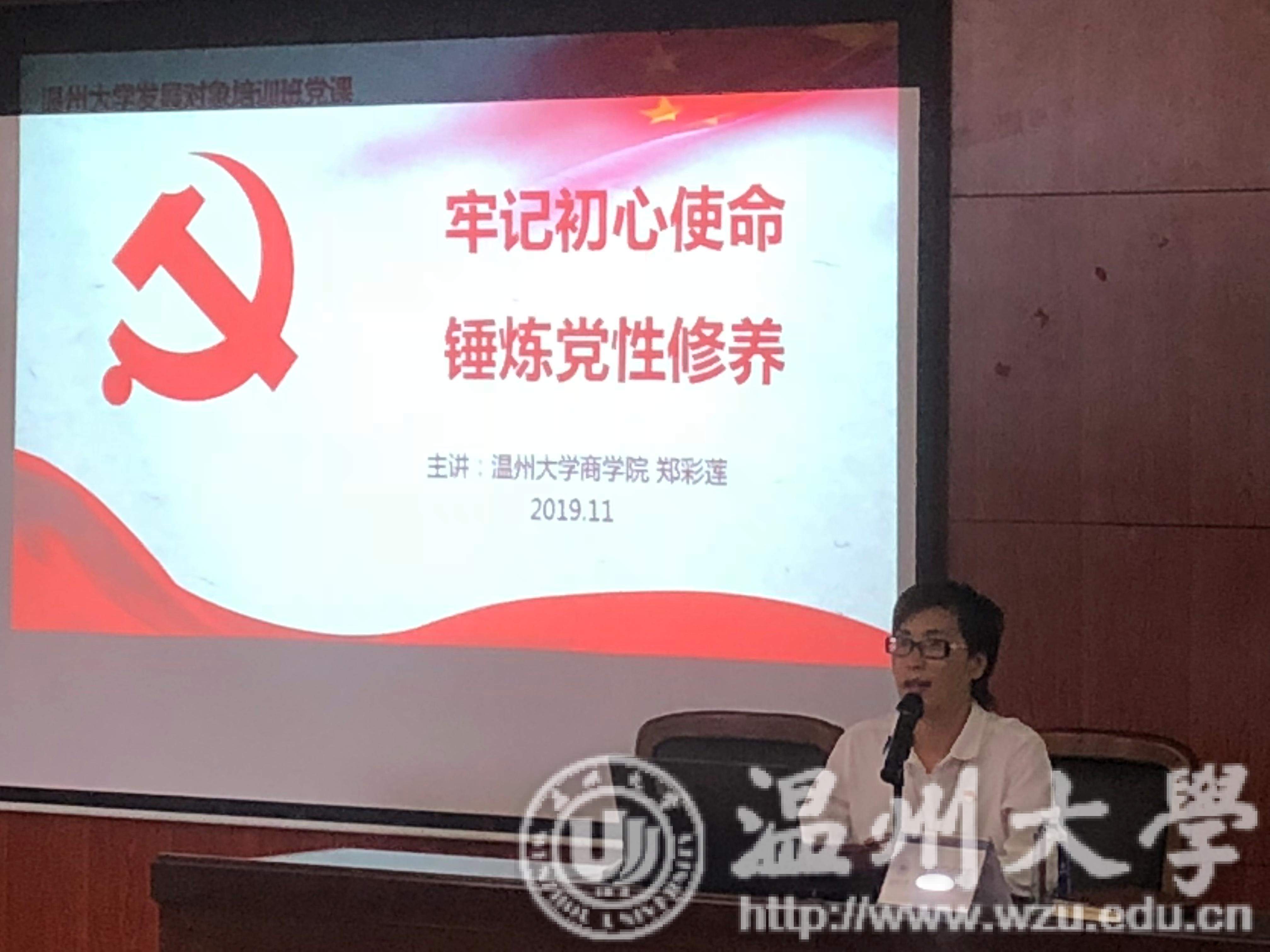 开班典礼结束后,由商公司党委书记郑彩莲老师为发展对象带来专题讲座——《牢记初心使命,锤炼党性修养》。郑老师首先就党性修养的本质属性进行了深入的解读,她表明党性修养是党员自我教育、自我改造、自我完善的过程,是党的本质属性在党员身上的内化。接着,郑老师强调了员工党员加强自身修养的重要性。她强调加强自身修养是共产党员个人健康成长的基本规律,是实施领导行为的必然选择,是事业不断发展的迫切需要,也是永葆我党先进性的内在要求。锤炼党性修养的密码就在于思想入党,同时要端正入党动机,并且在实践中修好共产党人的“心学”。最后,郑老师告诫我们:党性修养,要知行合一。路虽远,行将必致;事虽难,作则必成。