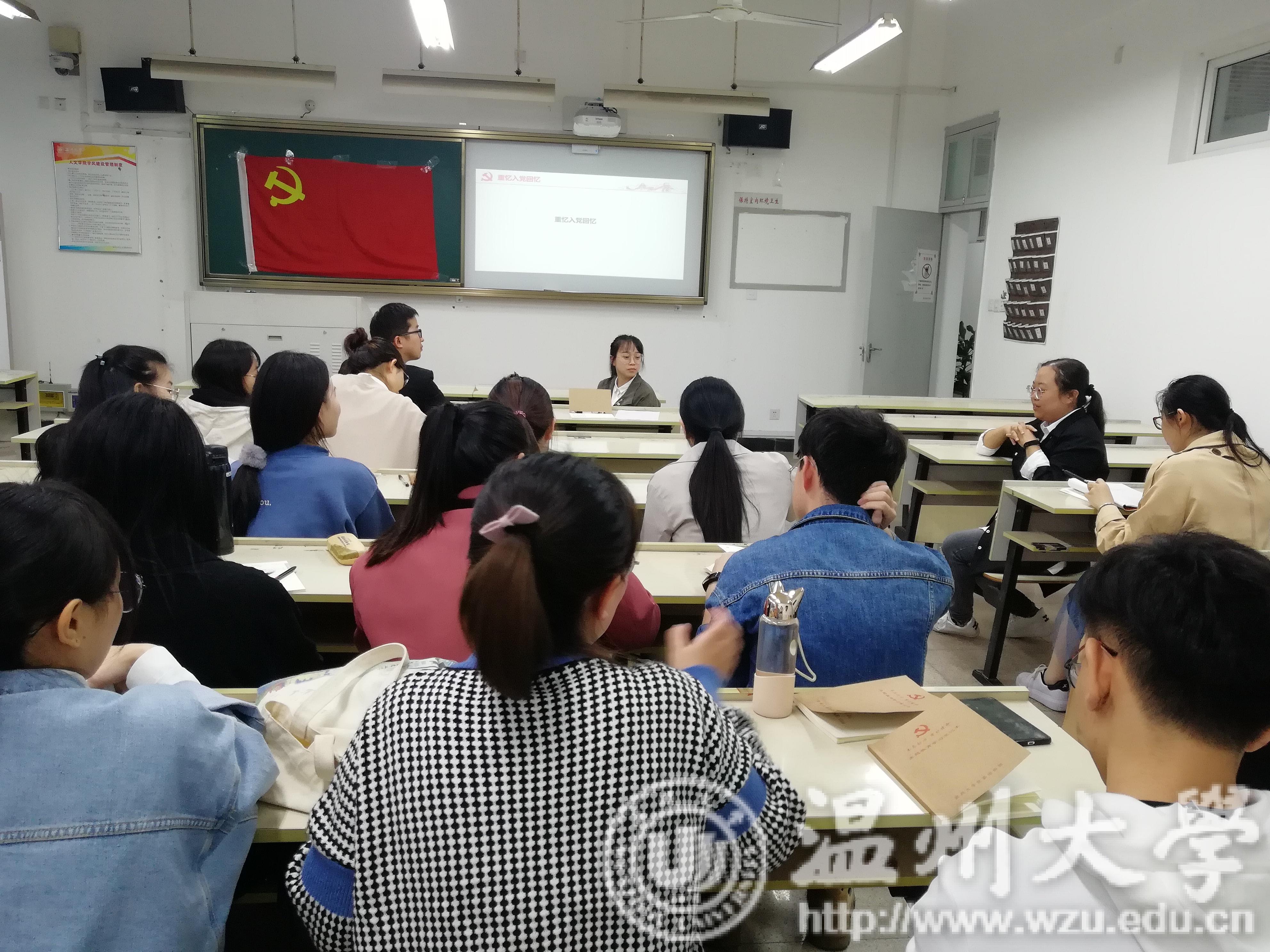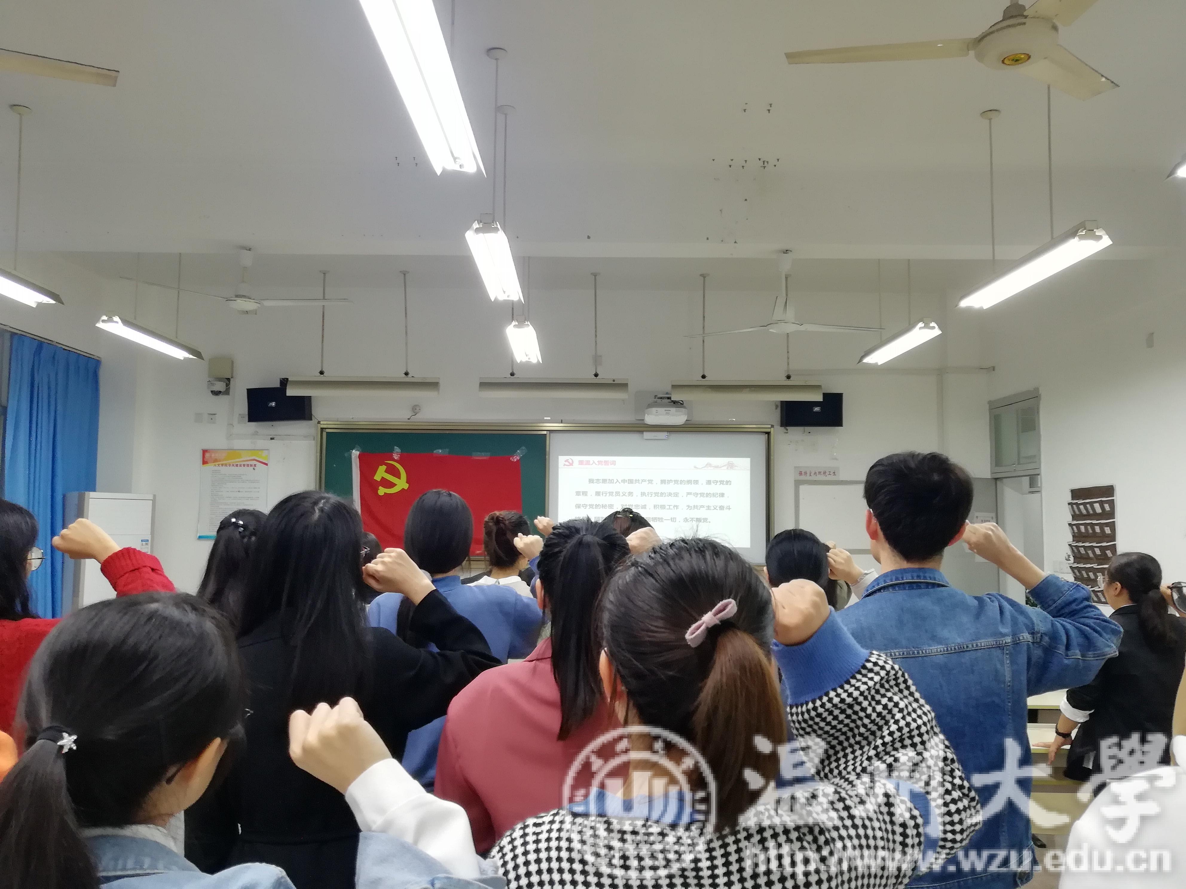 首先,李林军同志带领大家一起了解了“四重四敢”的具体内涵。接着,全体党员同志集体起立,右手握拳,重温入党誓词,在鲜艳的党旗下进行庄严宣誓。随后,党员同志们纷纷回忆起了入党经历,畅谈自己的入党初心。王红同志为作为共产党员的姥姥的事迹和对党坚定的信念而感动,从而选择加入中国共产党,希望能用自己的力量去帮助他人。刘家月同志认为,未进党的门,先做党的人,虽然入党过程“曲折”,但她一直以党员的标准严格要求自己,无私奉献,为同学们服务。王艺同志对我党的革命历史深有感触,深刻地体会到了今日的和平与繁荣的来之不易。蔡静函同志结合自身入党经历,意识到了群众基础的重要性。