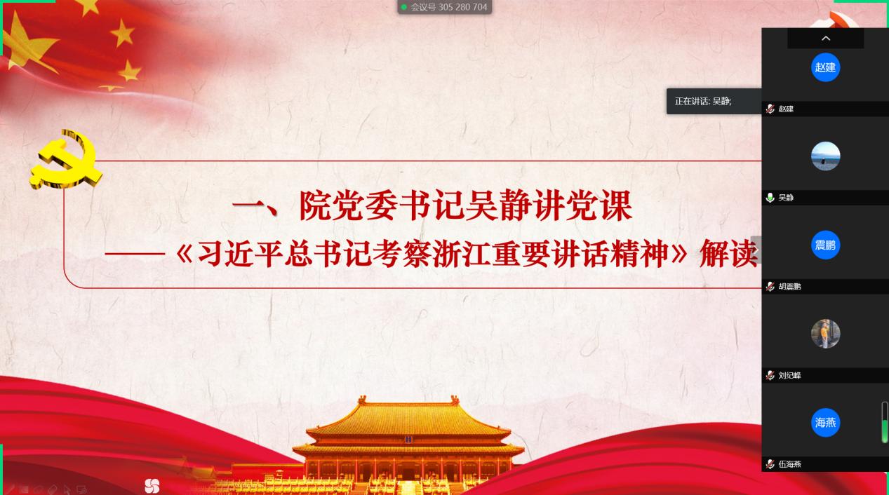 2020年4月10日上午,公司教工第五党支部在腾讯会议上开展了习近平总书记考察浙江重要讲话精神学习会。本次会议由党支部书记魏一主持,支部全体成员参加。