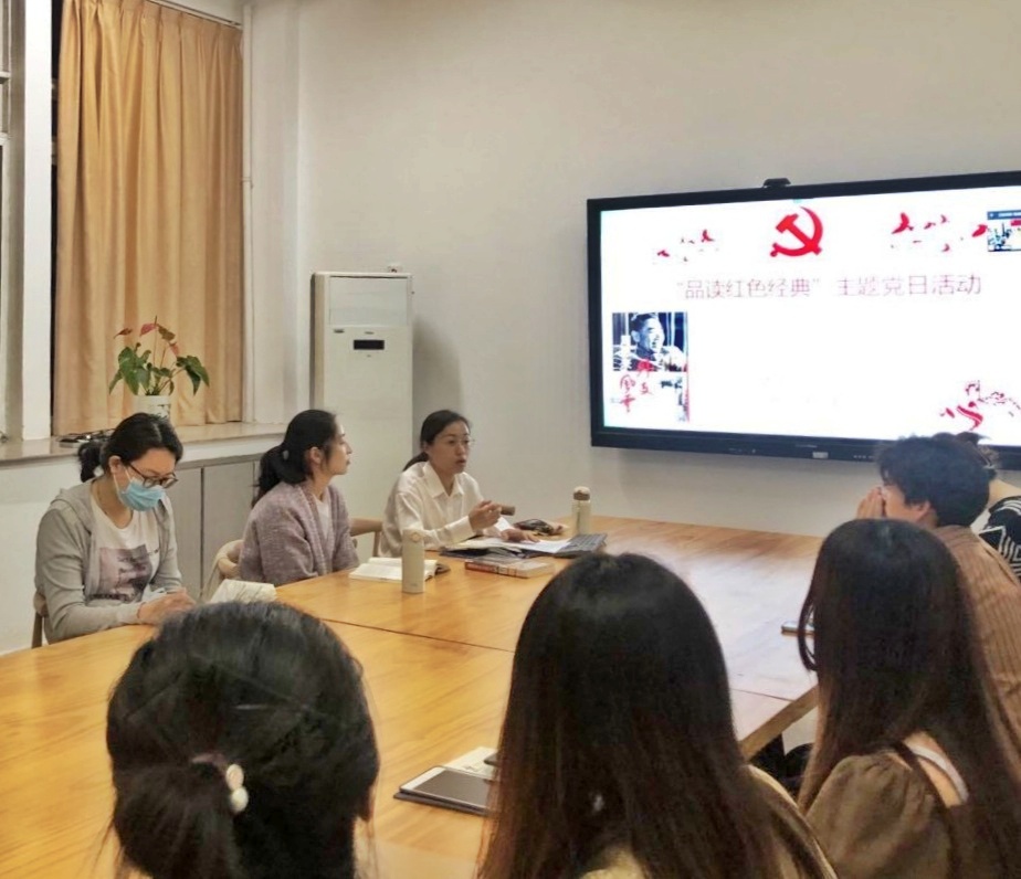 为庆祝建党100周年,扎实推进党史学习教育,2021年4月24日晚,我院员工第二党支部于人文楼214“党员之家”开展“品读红色经典”主题党日活动。本次活动由党支部书记陈赛君同志主持,全体党员通过线上线下相结合的方式共同参加。