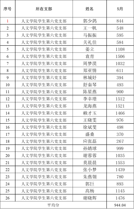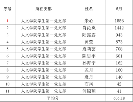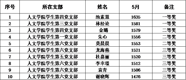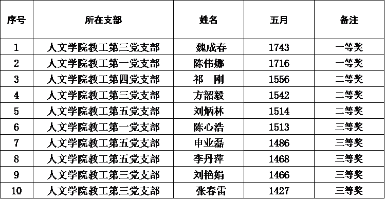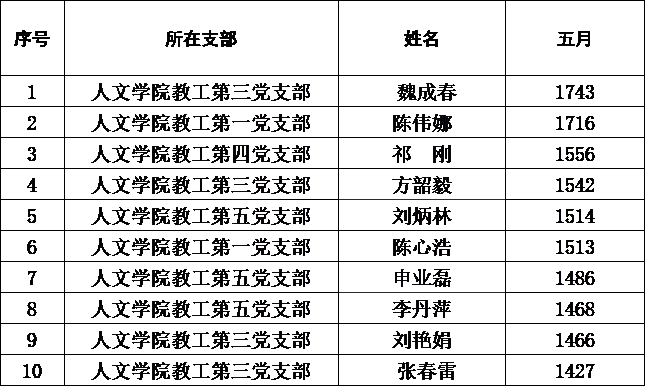 (教工党支部5月优秀学习代表前十位统计)