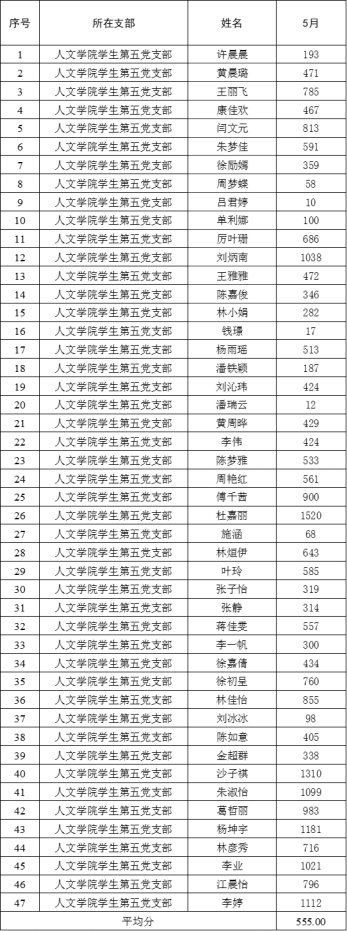 (员工第五党支部5月学习情况)