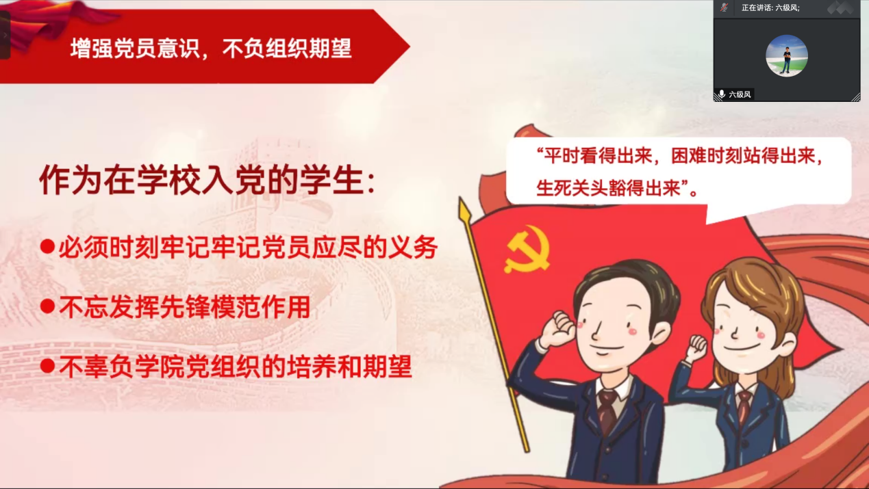通过本次会议,毕业生党员们树立了毕业生党员的党性意识,提高了政治站位,加强了毕业生党员自我约束能力,并对即将开展的毕业生党员组织关系转接工作进行部署,为毕业生党员安全、顺利地离校奠定了有力基础。