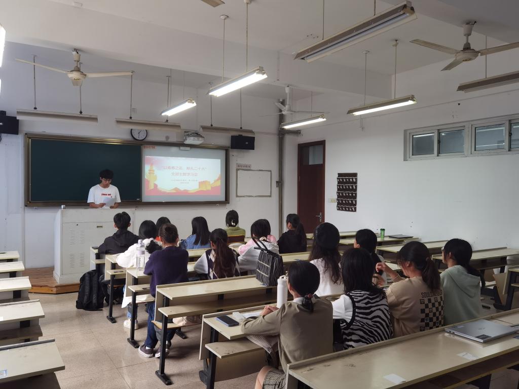活动开始,缪佳馨等6名发展对象结合对《高举中国特色社会主义伟大旗帜 为全面建设社会主义现代化国家而奋斗》和《中国共产党第二十次全国代表大会关于十九届中央委员会报告的决议》相关文件的学习,发表了心得体会。