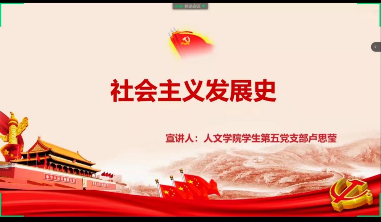 为引导广大青年进一步了解社会主义的发展历史,传承中华优秀民族精神,12月14日下午14:00,在腾讯会议举行的2022-2023学年永利yl23411官网第五期团干培训中,公司员工第五党支部卢思莹同志以“社会主义史”为主要内容,做了题为《社会主义发展史》的宣讲。