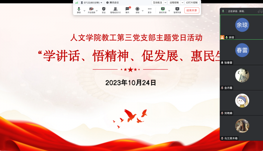 为了深入学习习近平总书记关于主题教育系列重要讲话,领悟其在浙江考察时的重要讲话精神,10月24日晚,永利yl23411官网教工第三党支部在线上开展了以“学讲话、悟精神、促发展、惠民生”为主题的党日活动。