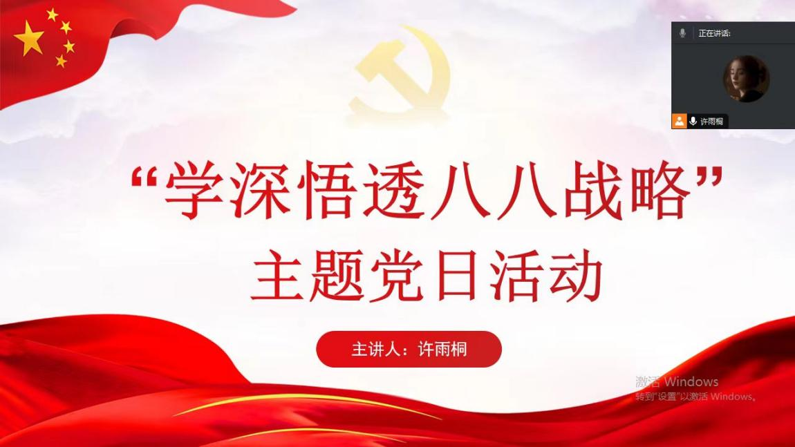 为更好领悟习近平新时代中国特色社会主义思想的理论渊源和发展脉络,深入学习“八八战略”这一习近平总书记留给浙江的宝贵财富,2023年11月15日,员工第七党支部以“永远跟党走,启航新征程”为主题在线上开展学习贯彻习近平总书记考察浙江重要讲话精神党日活动。