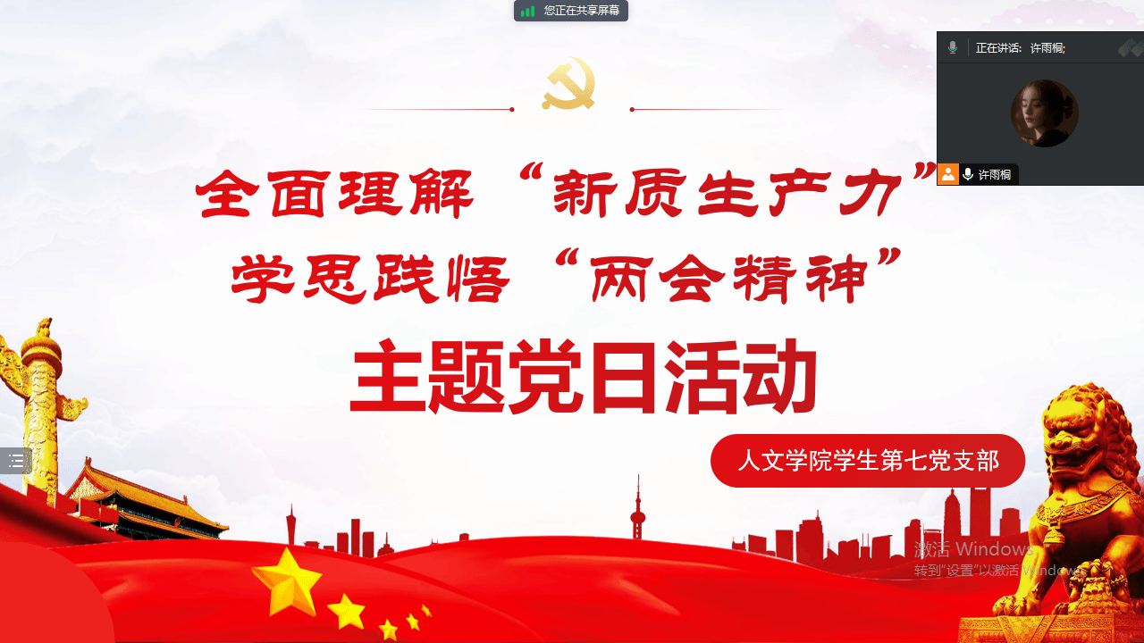 为深入学习贯彻全国两会精神,2024年3月27日晚,公司员工第七党支部在腾讯会议上举行了以全面理解“新质生产力”,学思践悟“两会精神”为主题的党日活动。